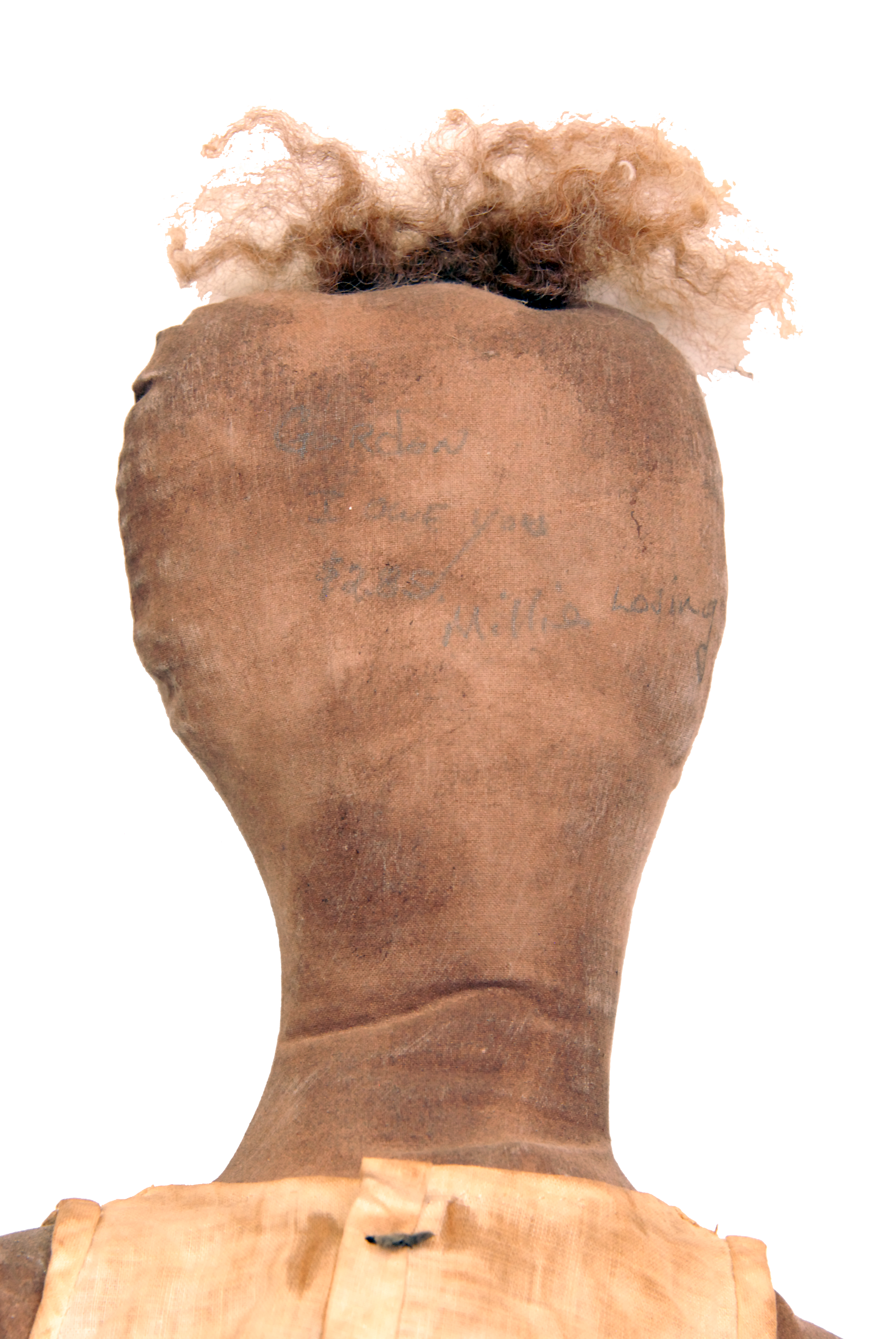 After purchasing bus tickets for Peggy and herself, Millie Loving went back to an aisle of personal grooming products and brought a bottle of hair straightener to the register. As Gordon’s affidavit recounts, Millie did not have sufficient funds to purchase the hair straightener and began to return it to the shelf. Knowing the couple, Gordon told Millie that she was good for an IOU for the $2.85 hair product. As an IOU, Millie picked Gordon’s pencil off the counter and wrote the following on the back of the doll’s head: Gordon / I owe you / $2.85 / Millie Loving. Gordon Barlow shortly thereafter moved to Staunton, VA where he pursued a successful career in pharmacy and healthcare consulting.